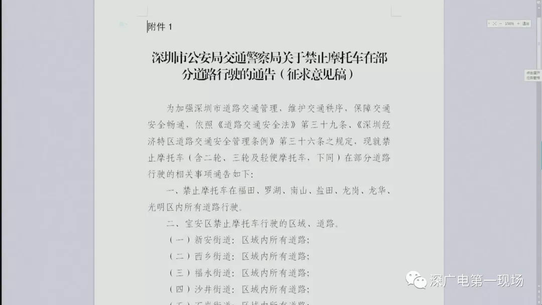 時隔15年后,根據(jù)市政府規(guī)范性文件管理要求,9月14日深圳交警聯(lián)合市政府法制辦發(fā)布了《深圳市公安局交通警察局關(guān)于禁止摩托車在我市部分道路行駛的通告》,對外征求意見10天,其中一個意見方向是全面取消禁摩令管理措施,全面放開摩托車,讓摩托車在全市道路通行。