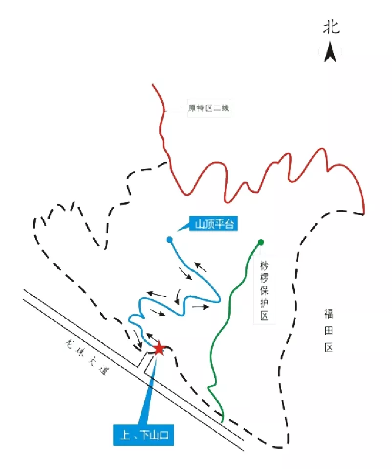 ▲重陽節(jié)大南山登山路線示意圖