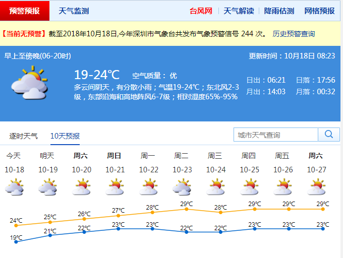 市內(nèi)吹2-3級東北風(fēng),沿海和高地偏東陣風(fēng)6-7級。大部分地區(qū)能見度較好,在8-15公里。雨時能見度較低,出行注意安全。最小相對濕度在80%左右,最大相對濕度在90%左右。