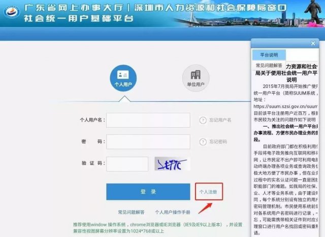 注冊成功后返回操作系統(tǒng)登錄,輸入用戶名和密碼進(jìn)入個人網(wǎng)頁。注冊條件需要有12家銀行(金融社保卡合作銀行)的深圳開戶的銀行賬號。