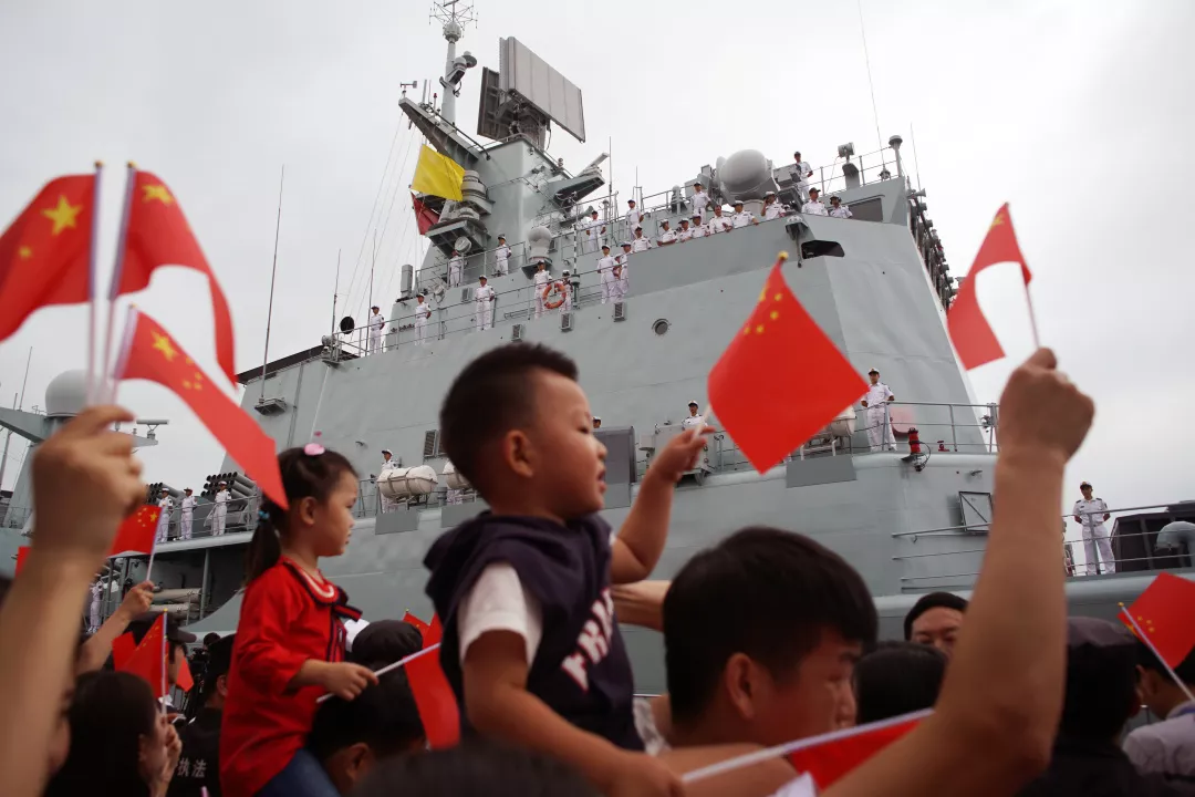 ▲深圳艦結束為期4天的訪深行程返回湛江母港,數(shù)百市民自發(fā)歡送