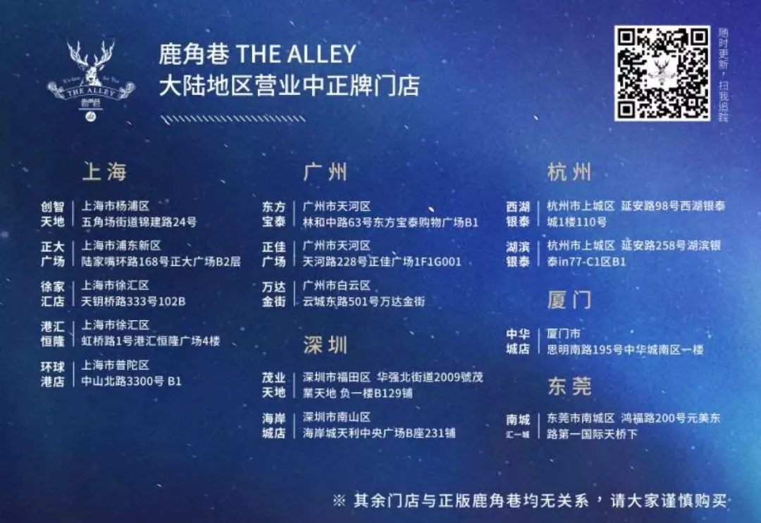 據(jù)大陸地區(qū)品牌總經(jīng)理譚力說:如果你在街邊小攤看到鹿角巷,那肯定是假的。因?yàn)槲覀冎蝗腭v大型商場。
