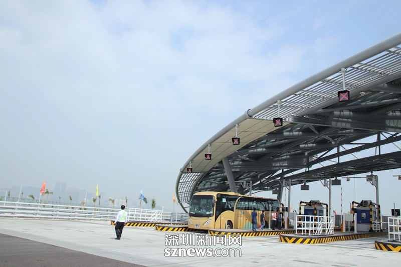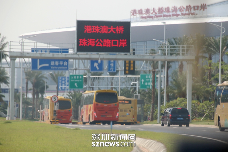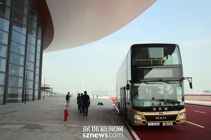 又一輛穿梭大巴抵達港珠澳大橋珠海口岸大樓