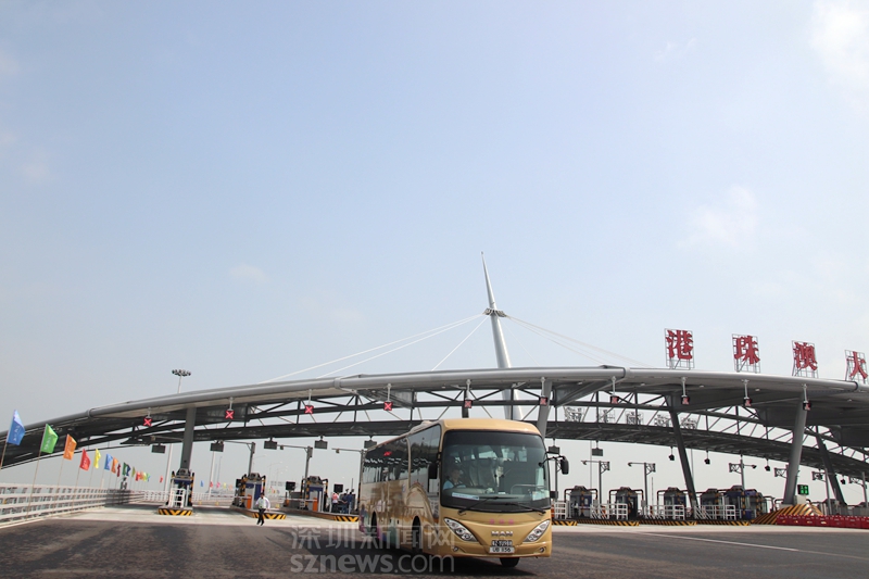 一輛穿梭巴士經(jīng)過港珠澳大橋珠海收費站
