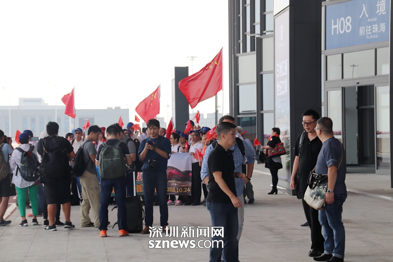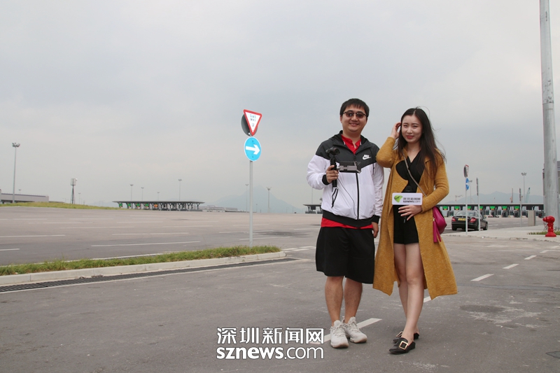 有記者在港珠澳大橋珠海口岸大樓前采訪
