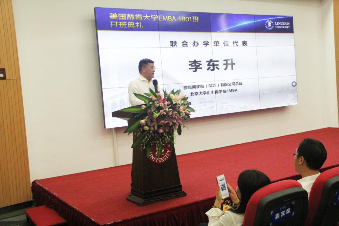 美國林肯大學的發(fā)展也離不開合作辦學單位的支持,聯(lián)合辦學合作單位代表李東升先生,分享了他就讀EMBA的心得,同時也對新教育的理念、新時代企業(yè)發(fā)展的模式提出了自己的見解。