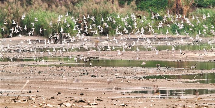 連日來,在福田紅樹林保護(hù)區(qū)內(nèi),經(jīng)??梢钥吹?,灘涂上棲息著密密麻麻的候鳥。其中,有不少市民熟悉的面孔,幾乎每天都能看到約20只被譽(yù)為濕地明星的國(guó)家二級(jí)保護(hù)鳥類黑臉琵鷺在活動(dòng)。11月7日,福田紅樹林保護(hù)區(qū)監(jiān)測(cè)到,在高潮的時(shí)候觀察魚塘,黑尾塍鷸、紅腳鷸兩種鳥類的數(shù)量分別達(dá)到四五百只,環(huán)頸鸻、鐵嘴沙鸻的數(shù)量分別也有兩三百只,候鳥們隨著潮水覓食,時(shí)而飛起又落下,時(shí)而追逐,很是壯觀。廣東內(nèi)伶仃福田自然保護(hù)區(qū)工作人員介紹,從10月上旬開始,第一批候鳥“先頭部隊(duì)”抵達(dá)深圳灣,飛翔在灘涂上,現(xiàn)在,一天比一天熱鬧,深圳的候鳥季將持續(xù)到第二年4月份。