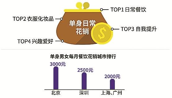 抖音上“成都小甜甜:帶我吃飯就好”,打動無數(shù)單身男女心。然而數(shù)據(jù)顯示,單身人群每月(除房租房貸外)的生活花費占比最多的就是日常餐飲,占比達40.67%。從地域來看,北京單身每月均餐飲花銷為3000左右,深圳為2500元,而上海、廣州則在2000元。可見,“吃飯”已經(jīng)單身男女生活的最大開支之一,想要實現(xiàn)“帶我吃飯就好”并非是一件容易的事情。而除餐飲花銷外,單身男女其他花銷分別為購置衣服化妝品、自我提升費用、興趣愛好。