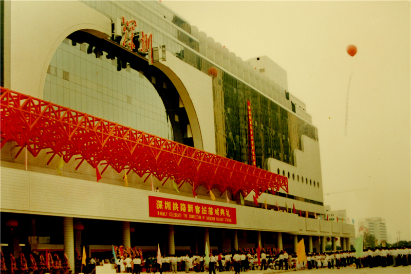 1990年6月,深圳市政府和廣鐵集團(tuán)共同對(duì)深圳車站進(jìn)行大規(guī)模改建,深圳新客站破土動(dòng)工。1991年10月12日,深圳火車站新客站建成投入使用,時(shí)任國(guó)務(wù)院副總理田紀(jì)云出席典禮并剪彩,鄧小平為車站落成題寫了站名,特意少寫了一個(gè)“站”字。不僅將激勵(lì)留給深圳站,也留給深圳,對(duì)深圳敢想、敢闖、敢干的超常規(guī)發(fā)展寄于了殷切期望。