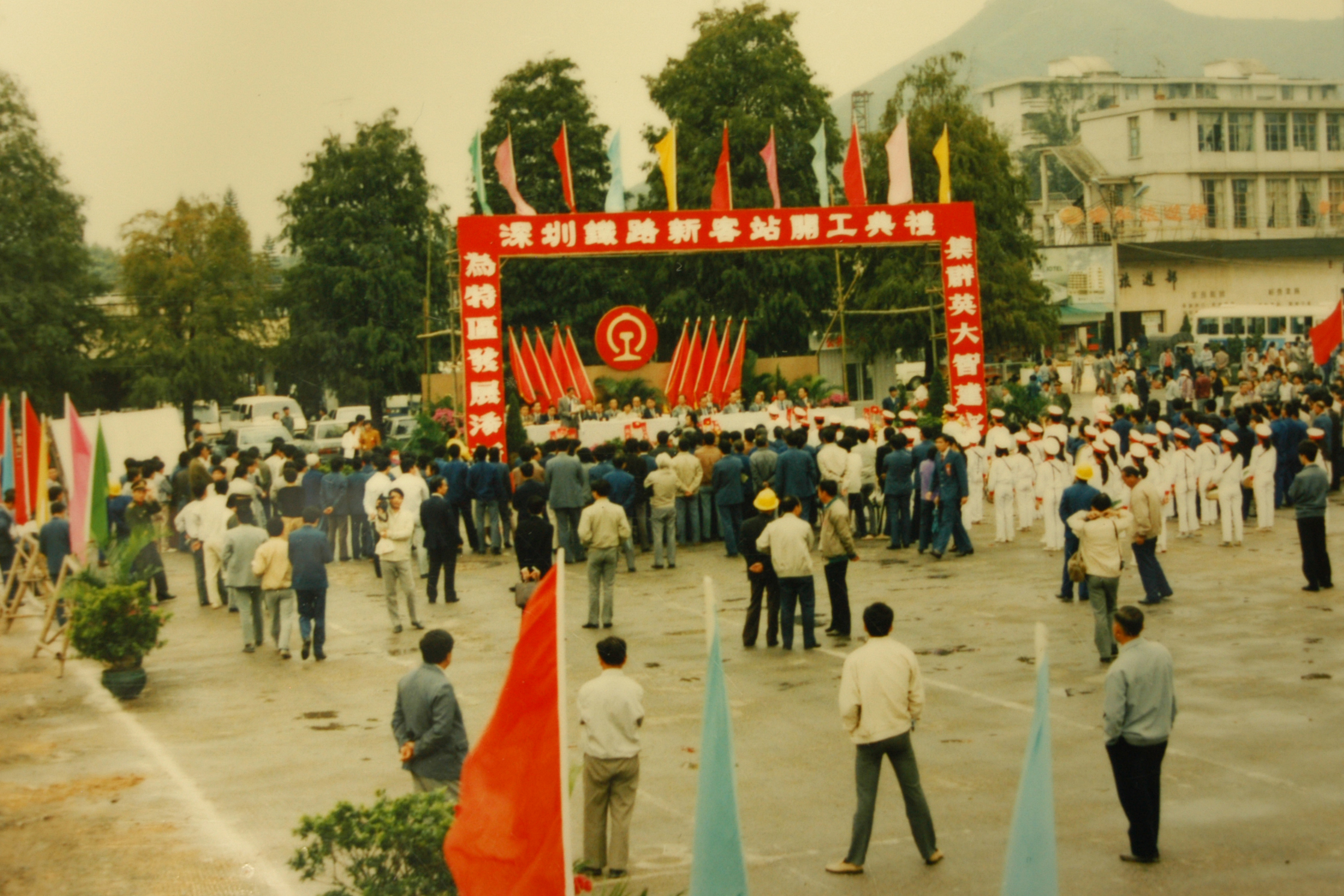 1991年10月12日,深圳新客站落成。時(shí)任國(guó)務(wù)院副總理田紀(jì)云出席典禮并剪彩。圖為典禮盛況