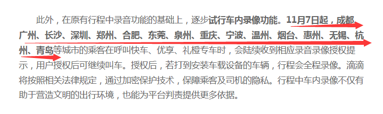 11月7日起,滴滴升級(jí)安全措施,在深圳等城市試行車內(nèi)錄像功能