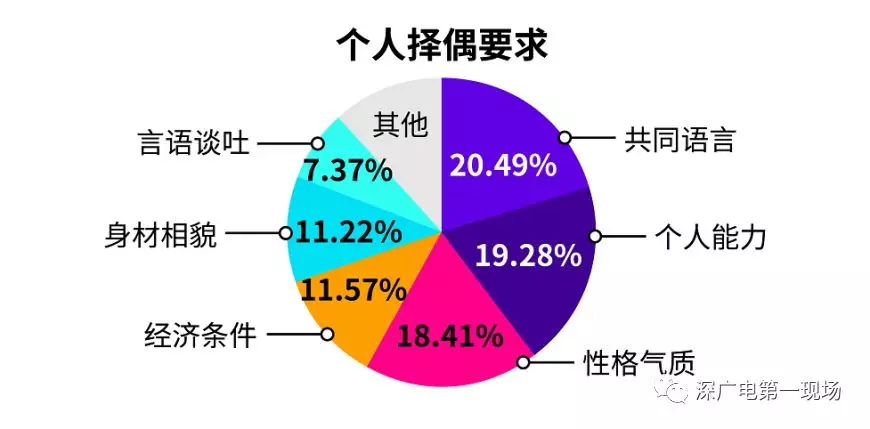 另外,調(diào)查顯示,共同語言、個人能力、性格氣質(zhì),為單身男女在擇偶時最看重的三個方面,其次為經(jīng)濟(jì)條件、身材相貌、言語談吐。