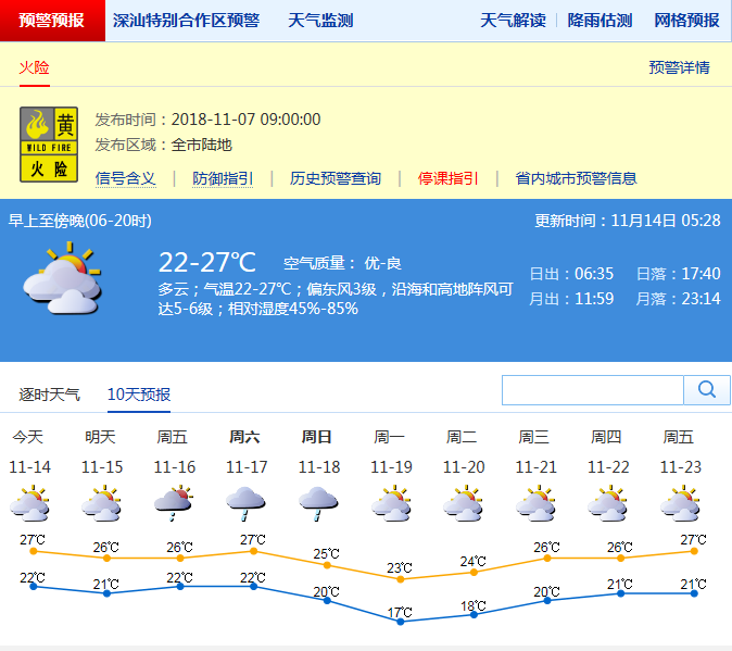深圳新聞網(wǎng)11月14日訊(記者 陳婕)@深圳人,溫度并不高的中午,適合出去吹吹小風(fēng),散散小心,睡睡小覺。趁天氣好,還可以曬曬被子!過幾天天就沒那么好了,距離周末的冷空氣還有幾天準(zhǔn)備時間,這次不會讓你們太失望,都可以準(zhǔn)備好長袖了!