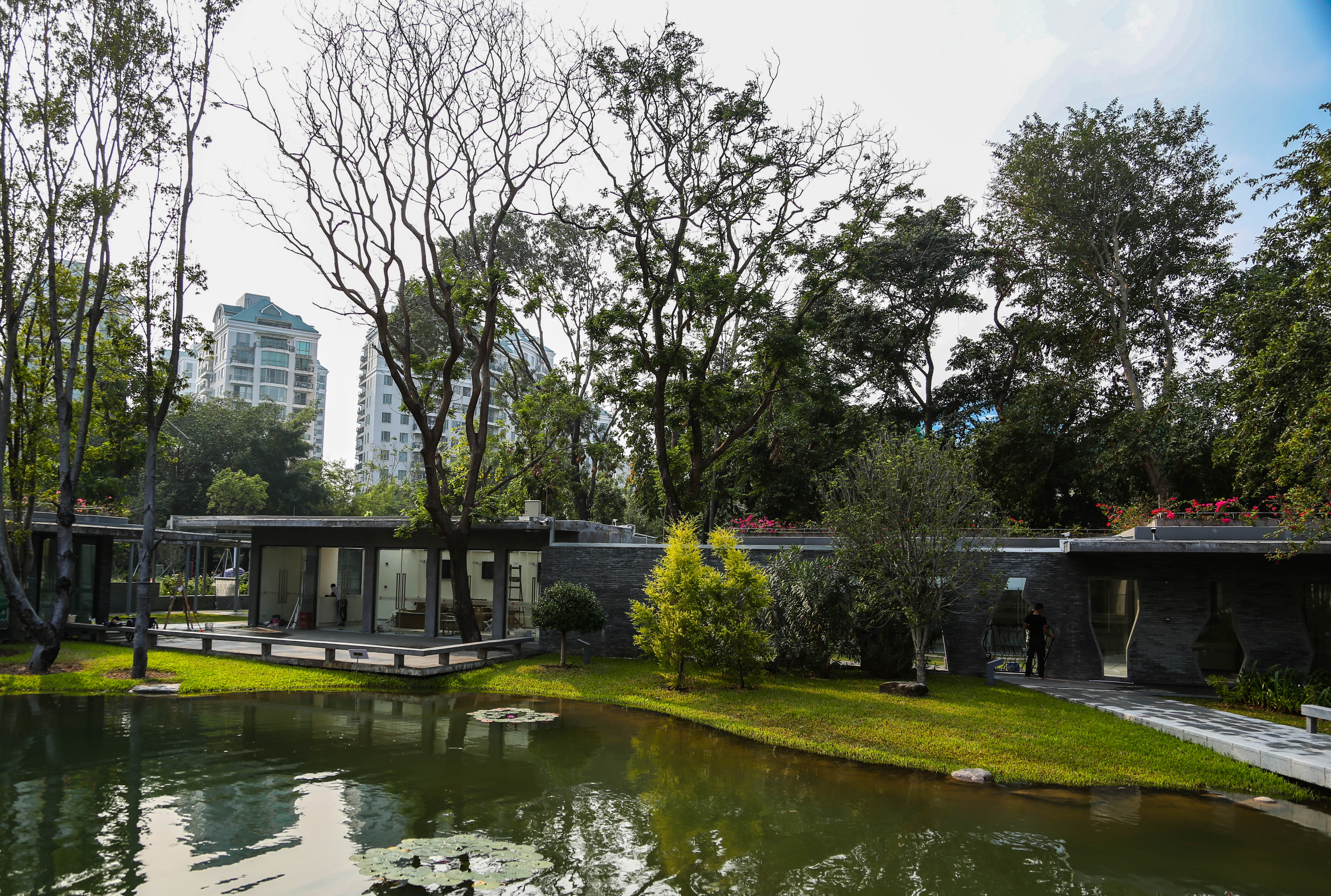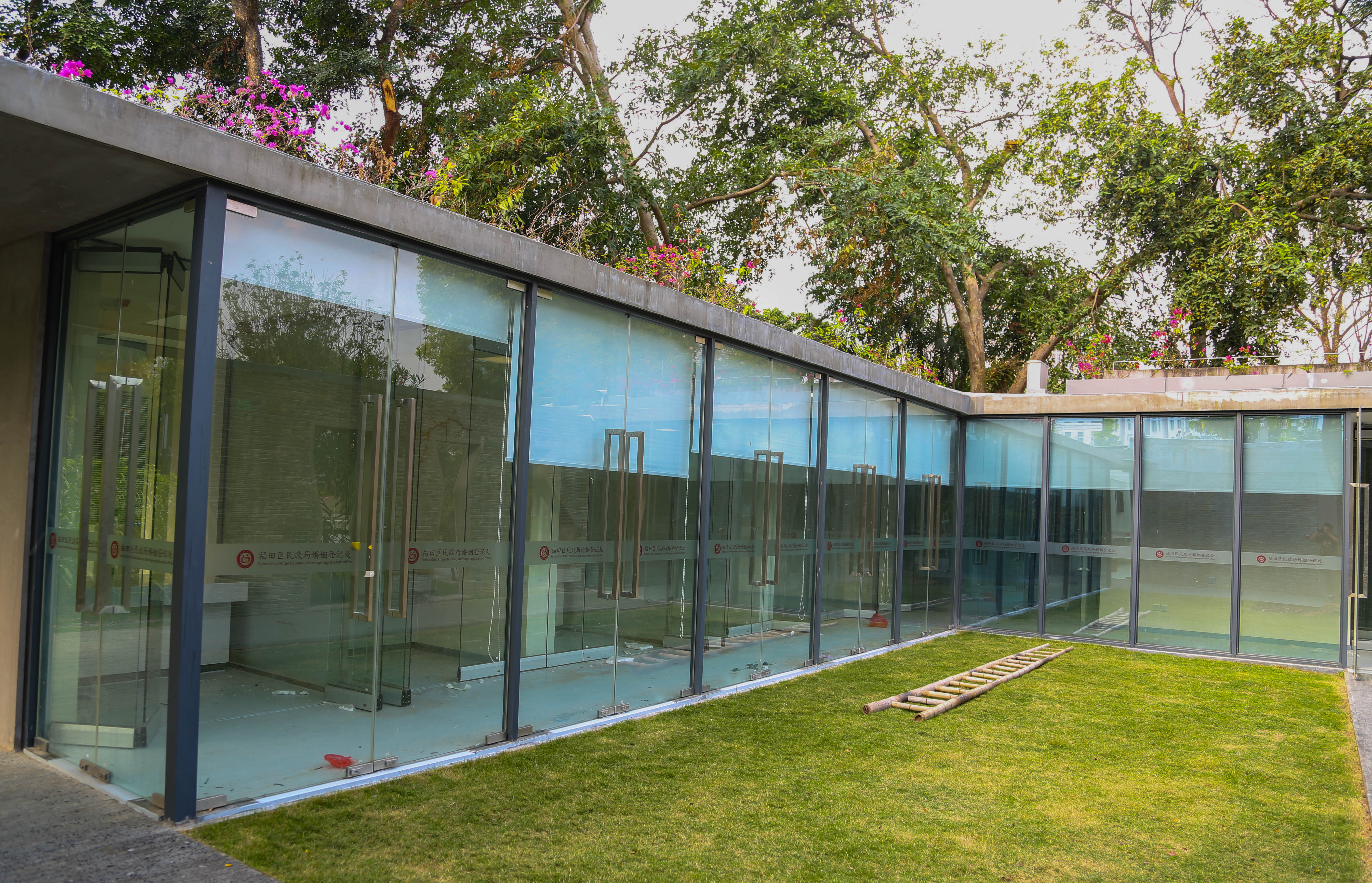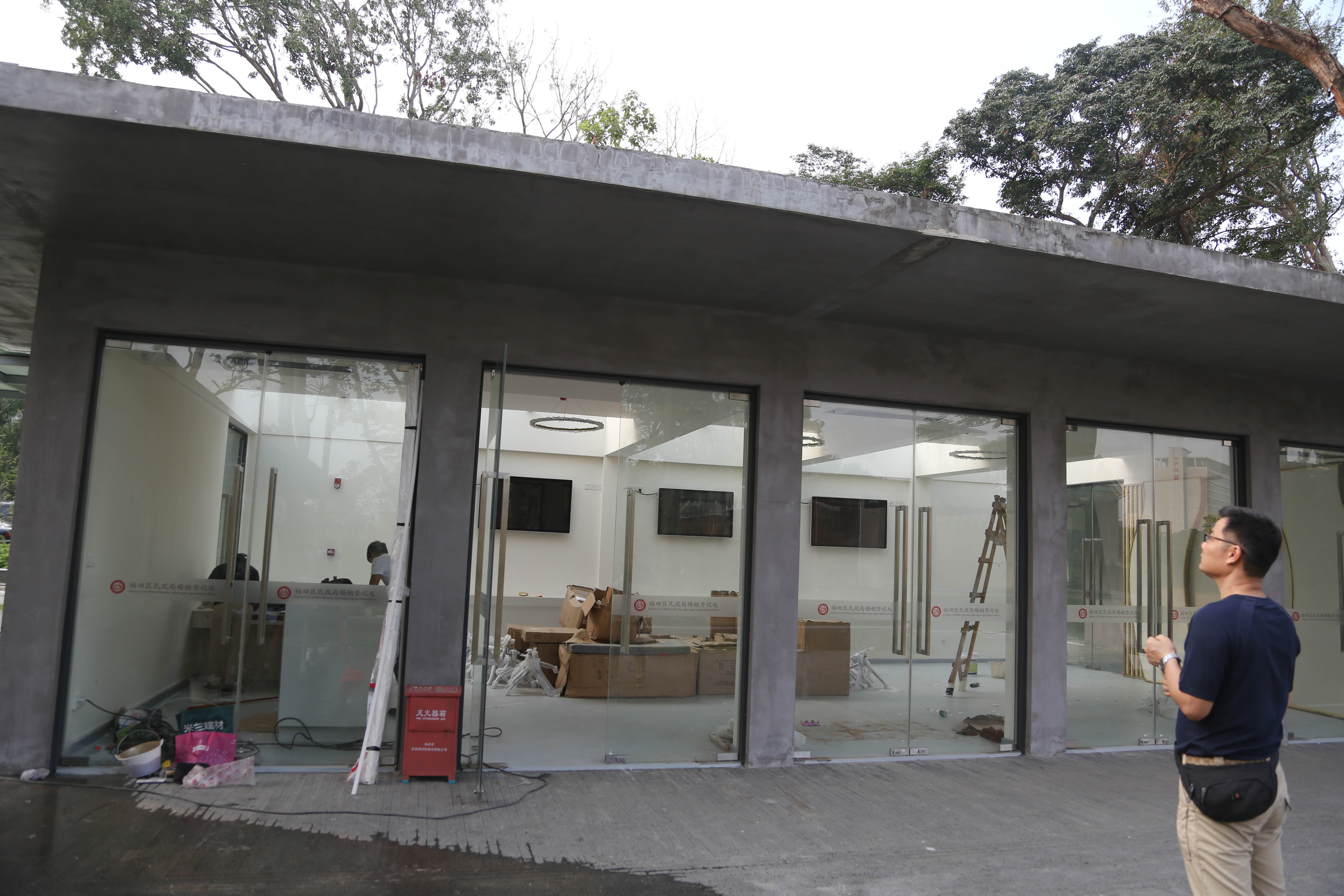 負(fù)責(zé)為婚姻登記處裝修的羅先生告訴記者,在中式禮堂西側(cè)的小池塘邊有一圈平房,在正式啟用之后這里將成為福田婚姻登記中心的行政辦公用房和接待市民進(jìn)行結(jié)婚登記的辦事大廳。