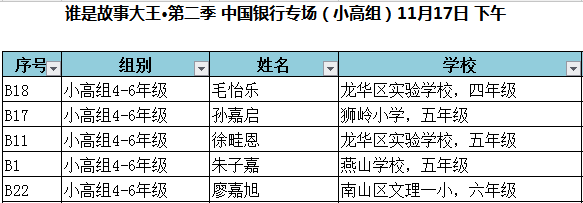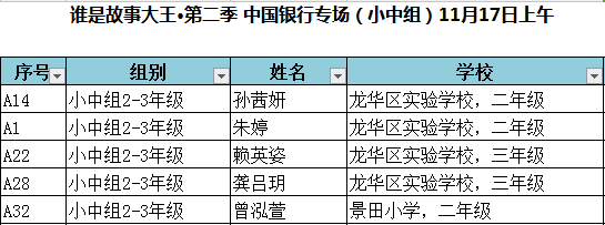 “誰是故事大王 ·第二季”深圳市復賽晉級名單