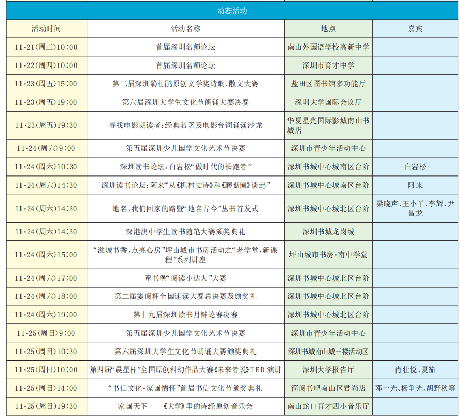 第十九屆深圳讀書月精彩活動預(yù)告(11·19-11·25)