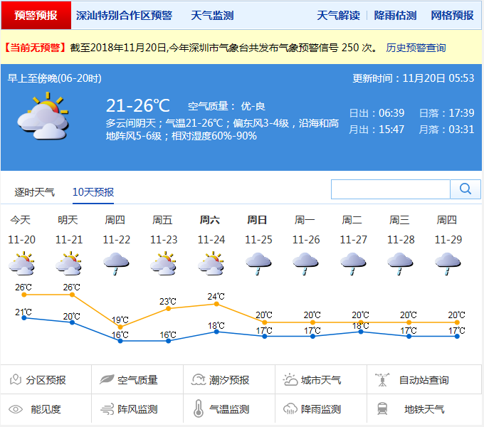 市氣象局發(fā)布未來(lái)十天天氣預(yù)報(bào)(數(shù)據(jù)更新于11月20日8時(shí)10分)