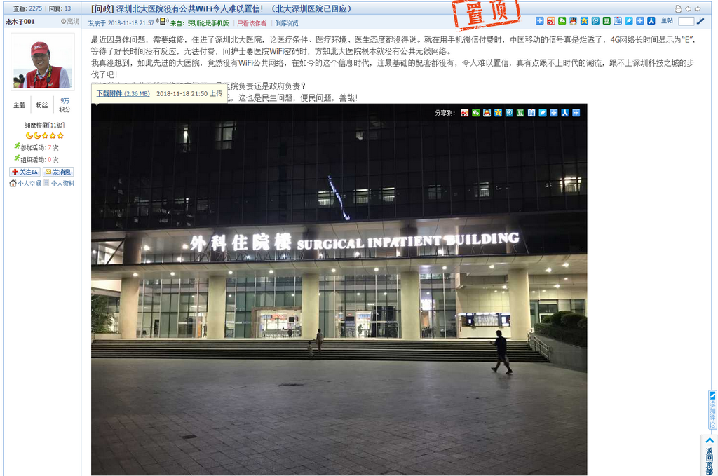 深圳新聞網(wǎng)11月20日訊(記者 劉婷)“北大深圳醫(yī)院竟然沒有公共WiFi?令人難以置信!”近日有網(wǎng)友“老木子001”在深圳論壇發(fā)帖稱,使用手機(jī)微信付費(fèi)時(shí),發(fā)現(xiàn)北大深圳醫(yī)院居然沒有公共無(wú)線網(wǎng)絡(luò)。(網(wǎng)帖地址:https://szbbs.sznews.com/thread-3821767-1-1.html)。