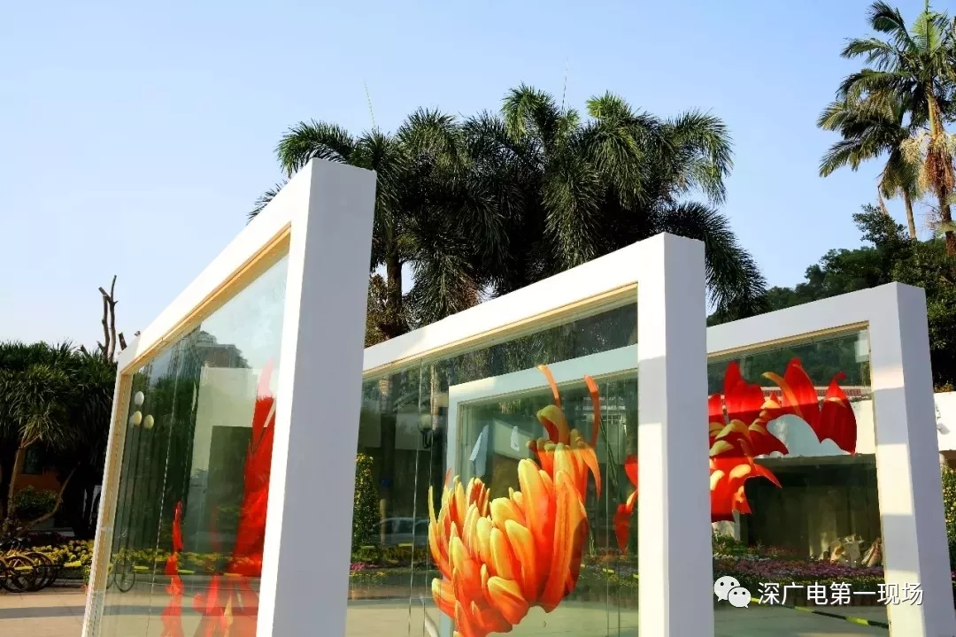 除了大型菊花球裝置外,由幾千朵菊花按序裱扎而成;釣魚區(qū)的“水上明月”,一輪由菊花裱扎而成的月牙立于水面,瑩瑩生輝;位于西大門、西門及南門的三層透視互動菊花裝置,意趣盎然;另有鮮切花制作的內(nèi)嵌式鏤空菊花拍攝板,都是市民們觀賞打卡的必去之地。