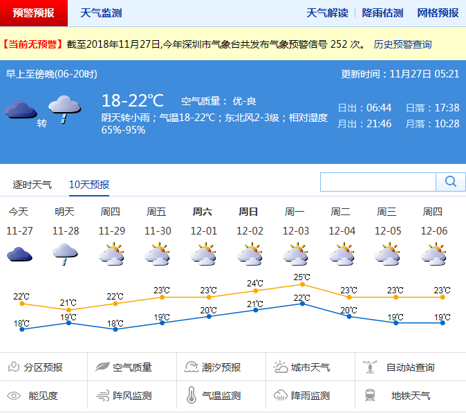 深圳新聞網(wǎng)11月27日訊(記者 陳婕)一場秋雨一場寒,市氣象臺預(yù)測,未來幾日秋雨綿綿,氣溫為17-22℃,下雨時能見度較低,出行注意安全。