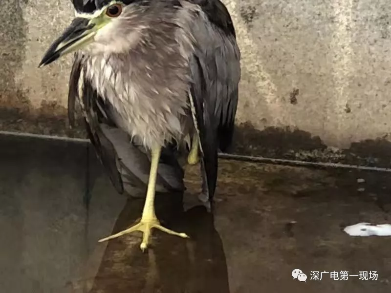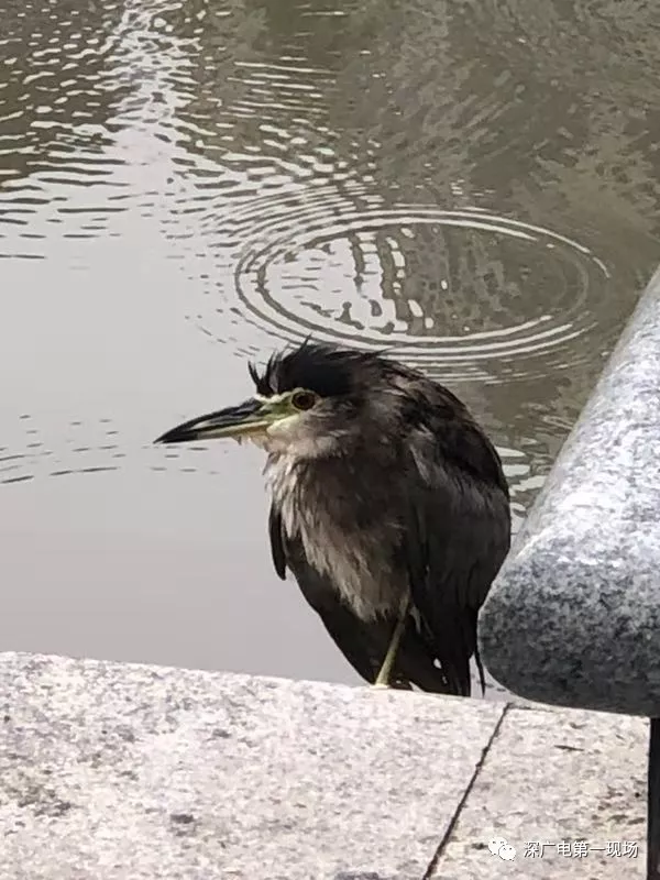公園的保安發(fā)現(xiàn)后,馬上致電深圳市野生動(dòng)物保護(hù)協(xié)會(huì),工作人員許先生到場后,把這只夜鷺解救上岸。