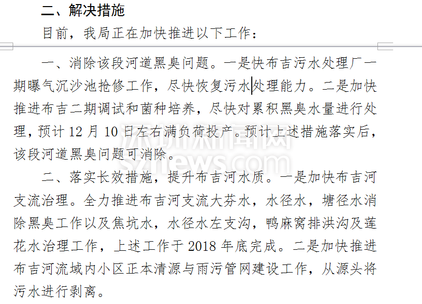 針對上述疑問,龍崗區(qū)環(huán)水局承諾將抓緊推進布吉污水處理廠一期曝氣沉沙池搶修工作,盡快恢復污水處理能力,而二期工程也預計于12月10日左右滿負荷投產,以上措施落實后,該環(huán)水局認為此段河道黑臭問題便可消除。為了保障治水工作長期有效,環(huán)水局還制定了加快布吉河支流治理及加快推進布吉河流域內小區(qū)正本清源與雨污管網建設工作的計劃。