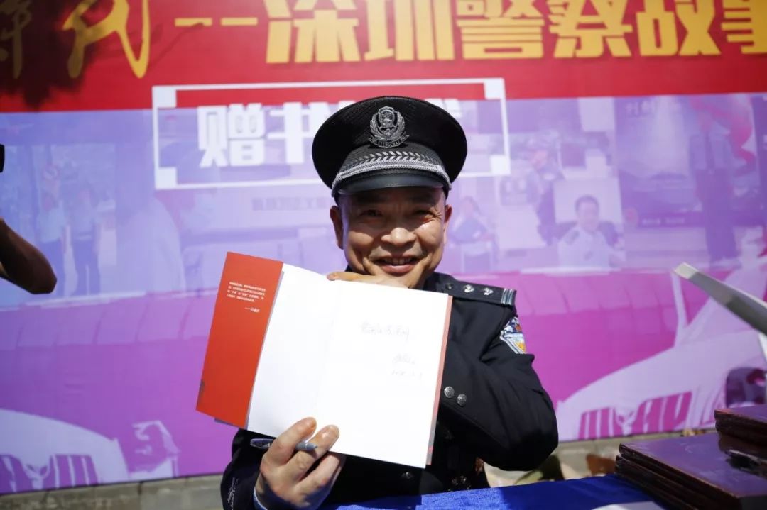 當天上午,人民公安出版社副總編李國強、著名作家李迪與市公安局領(lǐng)導(dǎo)來到福田分局開放點現(xiàn)場為深圳公安“每日警星”代表簽名贈書。在贈書點,許多市民排起了長隊,領(lǐng)取《英雄時代——深圳警察故事》。