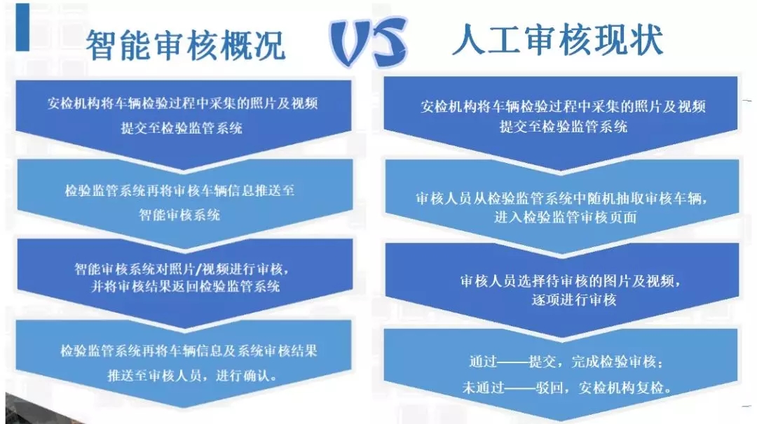 對(duì)審核結(jié)果、審核時(shí)間、通過(guò)率等各個(gè)方面,進(jìn)行實(shí)時(shí)監(jiān)控;智能審核信息的大數(shù)據(jù)分析,可為車(chē)輛檢驗(yàn)流程優(yōu)化提供強(qiáng)有力的支撐。