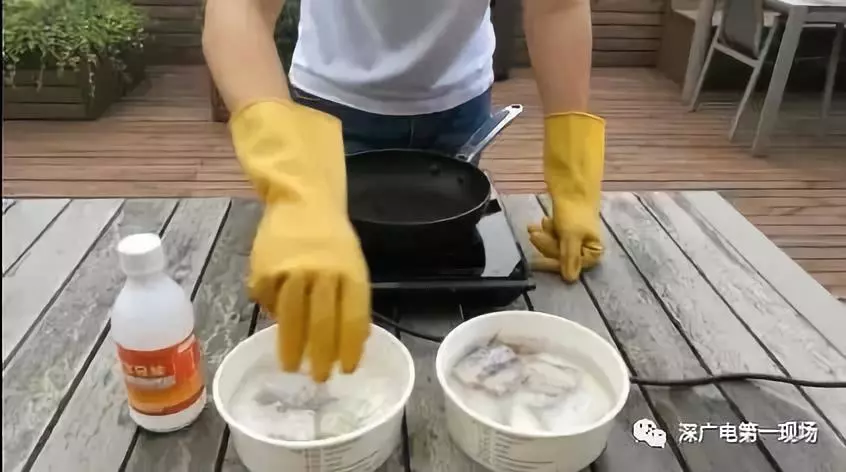 第三步,分別將正常帶魚(yú)和浸泡了福爾馬林的帶魚(yú)進(jìn)行油炸。