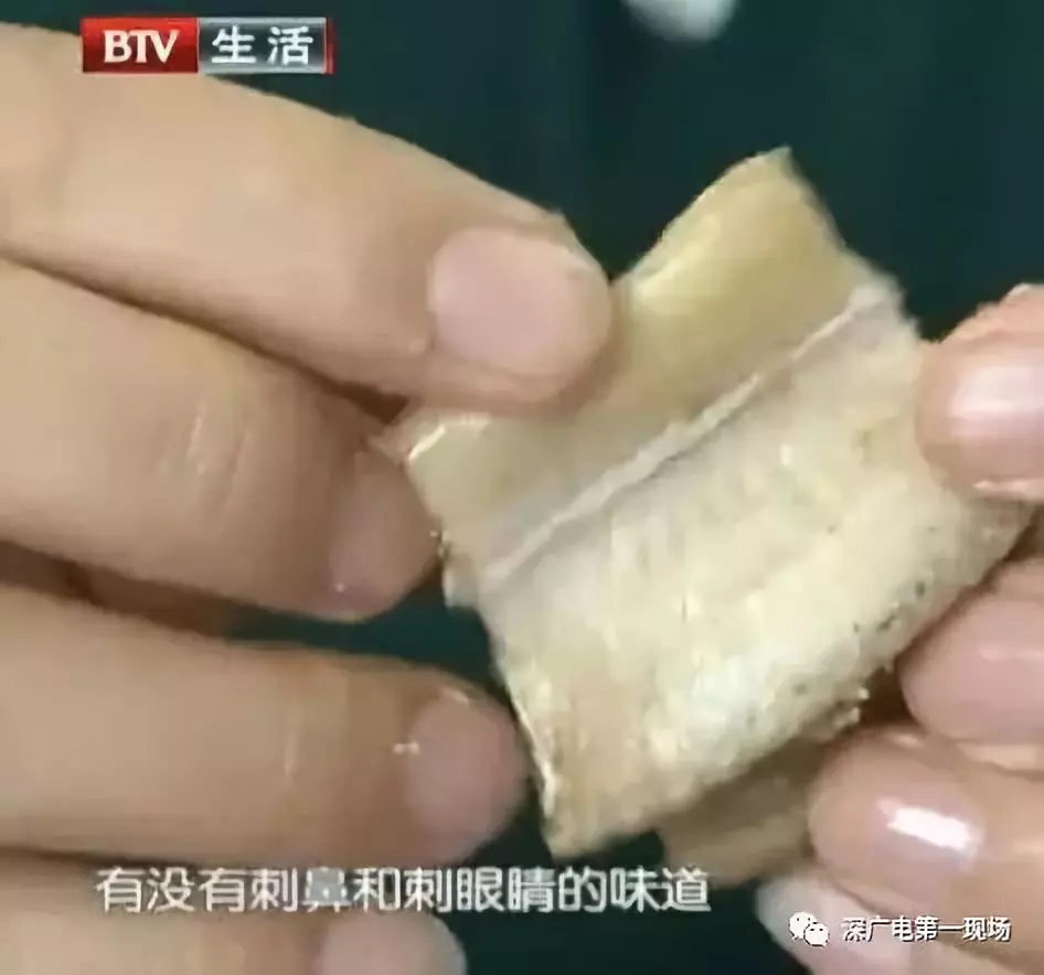 根據(jù)專家的分析,這些帶魚(yú)應(yīng)該是泡了甲醛的。之所以會(huì)產(chǎn)生爆裂“開(kāi)花”的情況,是因?yàn)榧兹┠苁箮~(yú)蛋白質(zhì)變性,魚(yú)肉會(huì)因此失去彈性與張力,變脆,突然遇到高溫時(shí),收縮就會(huì)產(chǎn)生扭曲、爆裂,狀如“開(kāi)花”。