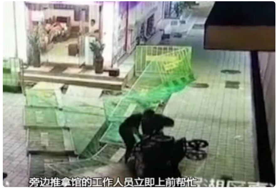 廣東DV現(xiàn)場2018年12月25日訊 事發(fā)在12月21日早上六點半左右、深圳市羅湖區(qū)向西村內(nèi)。只見男子開著三輪車在經(jīng)過圍蔽工地旁的護欄邊時,突然連人帶車摔倒進了圍蔽區(qū)域。他當(dāng)時撞到了擋板,撞到了擋板之后就倒了,撞到了頭部。發(fā)現(xiàn)男子摔倒后,旁邊推拿館的工作人員立即上前幫忙。