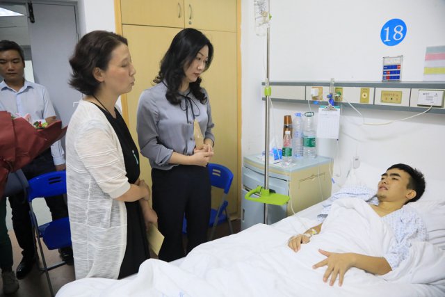 ▲深圳晚報(bào)、深圳市紅十字會、深圳市關(guān)愛行動公益基金會等單位領(lǐng)導(dǎo)和工作人員看望病中的向金華。