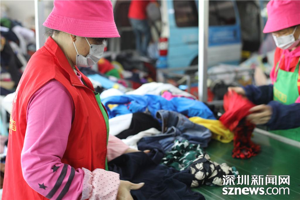 工作人員對分揀出來的衣物進(jìn)行分類
