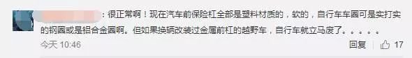 還有有不少網(wǎng)友指出,"很正常啊!現(xiàn)在汽車前保險(xiǎn)杠全部是塑料材質(zhì)的,軟的,自行車車圈可是實(shí)打?qū)嵉匿撊蚴卿X合金圈啊。但如果換輛改裝過(guò)金屬前杠的越野車,自行車就立馬廢了""如果把這些拿來(lái)冷嘲熱諷,鼓勵(lì)所有汽車制造商弄成實(shí)打?qū)嵉挠茶F,那么發(fā)生碰撞的時(shí)候就笑不出了""對(duì)一個(gè)局部點(diǎn)進(jìn)行沖擊。力度是非常大的,換其他大部分車都一樣"。