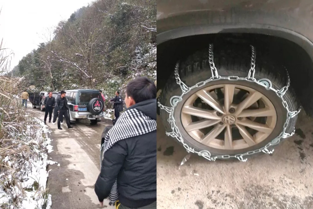 3天后,天氣稍微好轉(zhuǎn)。雖然仍天寒地凍,但機(jī)不可失,衣著單薄的民警們決定立刻實(shí)施行動。但是山路崎嶇,冰凍嚴(yán)重,車輛必須安裝防滑鏈才能緩慢前行,稍有不慎,路邊即是萬丈深淵,十分危險。上山途中,有幾次車輛遇坑,需要數(shù)人下車推動才能挨得去……