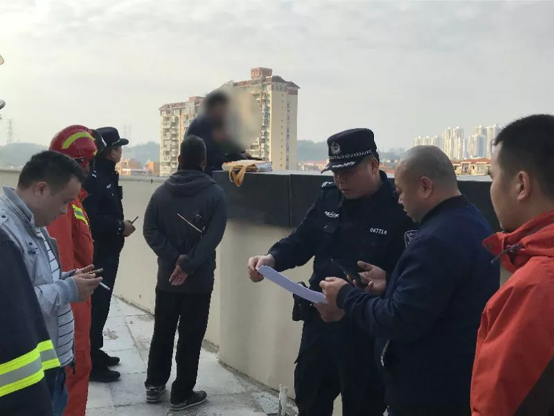 隨后,公安、消防等多部門很快趕到現(xiàn)場。大家兵分幾路,一路是消防救援人員,立即在一樓鋪設(shè)了救援氣墊,另一路是民警,對(duì)男子進(jìn)行現(xiàn)場勸說。