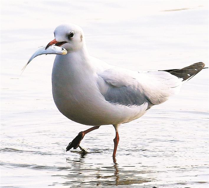 再往東去,便是深圳河入???這里也是深圳河與新洲河的交匯處。在這里,除了5只黑臉琵鷺正在河口覓食,河面上還聚集著上千只紅嘴鷗。每當(dāng)疏浚河道的船只駛過(guò),紅嘴鷗就成群結(jié)隊(duì)地尾隨著船只的航跡,捕食被船槳翻到水面上的魚(yú)蝦。