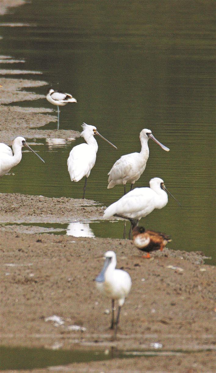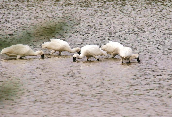 2號(hào)魚(yú)塘里的黑臉琵鷺群。