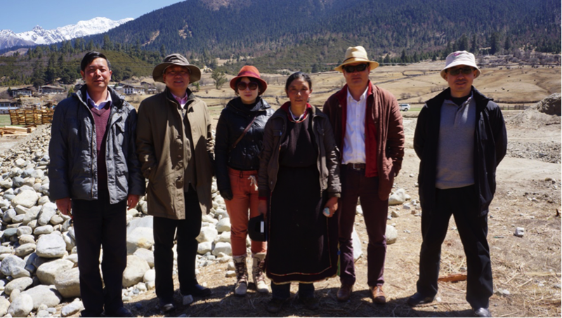 陳可石與魯朗小鎮(zhèn)工程總指揮蔡家華在工地選址(活動(dòng)主辦方供圖)