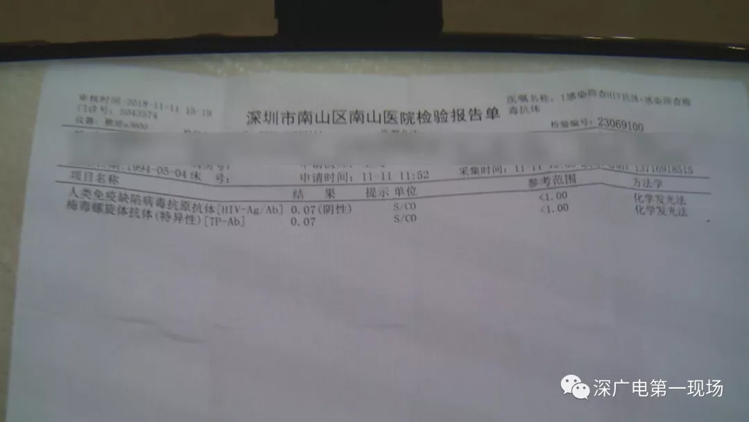 隨后,記者撥打吳某的電話,對報料人所說的情況進(jìn)行核實。電話中吳某告訴記者說他的病已經(jīng)治好了,并且給記者發(fā)來一張2018年11月11日,南山醫(yī)院的檢驗報告單。