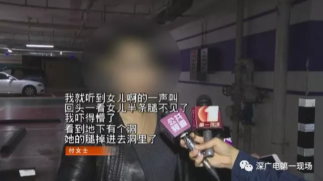 當(dāng)時停車場燈光昏暗,付女士的女兒剛準(zhǔn)備從后排左側(cè)的車門上車,就一腳踏進(jìn)了這個坑里。