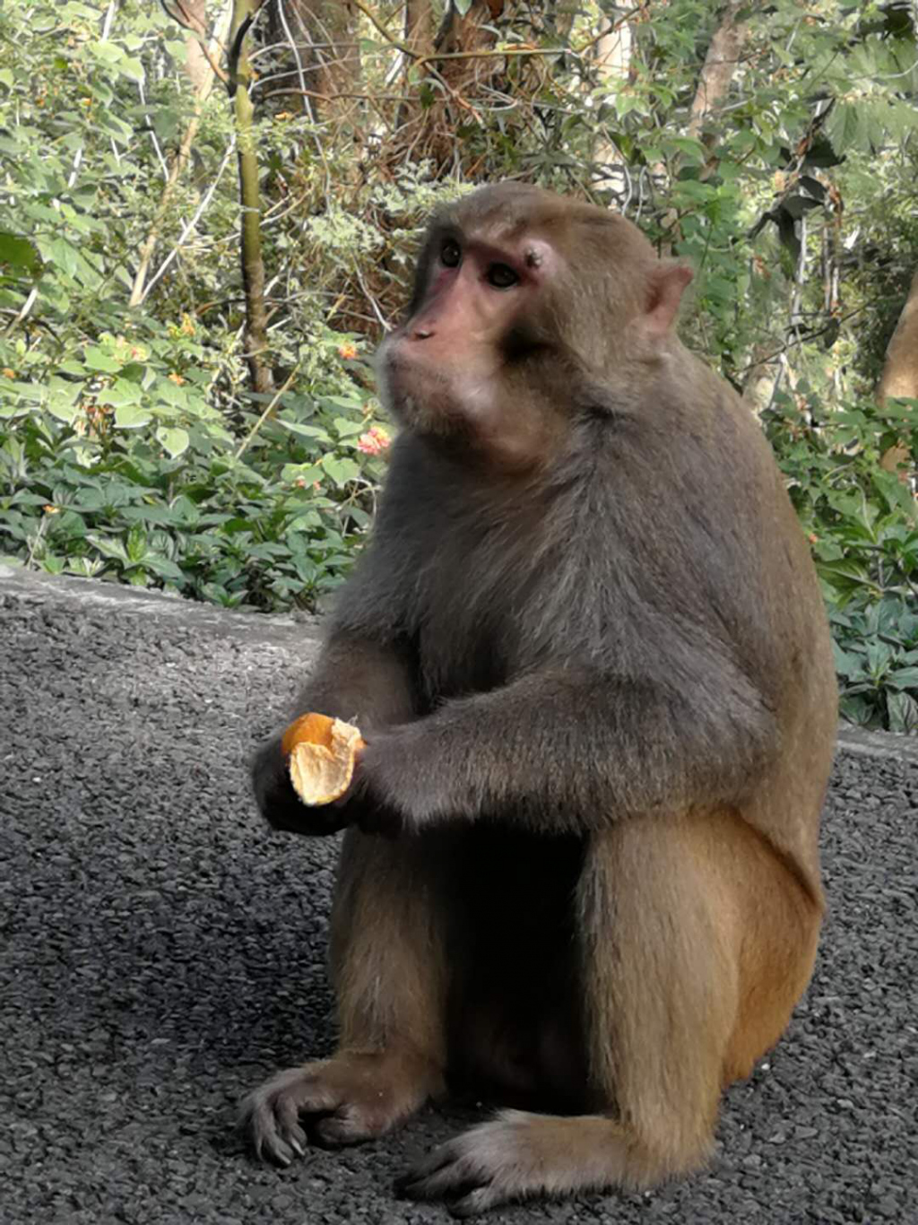 家住福田區(qū)梅山苑二期1棟的劉女士告訴記者,20日上午11點(diǎn)多,鄰居群里突然出現(xiàn)了一張猴子的照片,引發(fā)熱議。圖中可以看到,這只猴子蹲坐在地上,手里還拿著剝開吃了一半的橘子。發(fā)布圖片的鄰居說(shuō),這是在梅林山公園散步時(shí)發(fā)現(xiàn)的奇觀,猴子就在公園的馬路上,還會(huì)找人要吃的。無(wú)獨(dú)有偶,劉女士另一位朋友也在朋友圈發(fā)了一條"后山居然有猴子"的動(dòng)態(tài),配圖中的猴子蹲坐在馬路邊,對(duì)比兩張圖可以看出正是同一只猴子。
