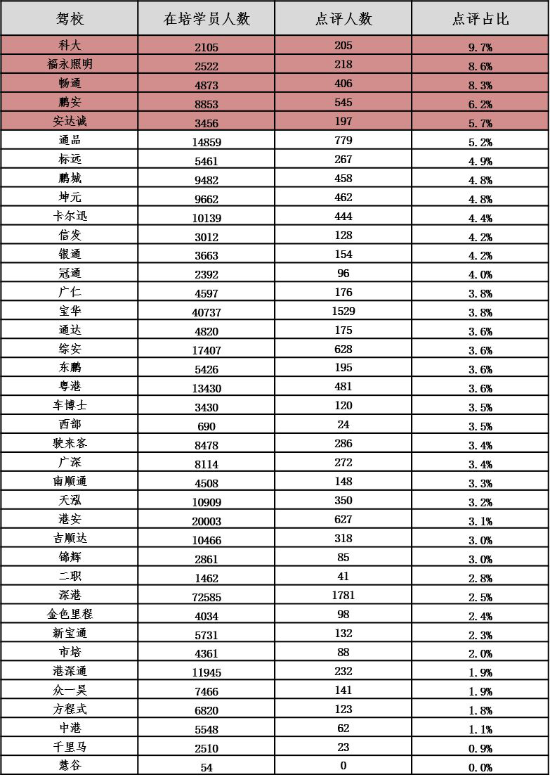 最新深圳駕校排行榜出爐!學員考試合格率最高的是……