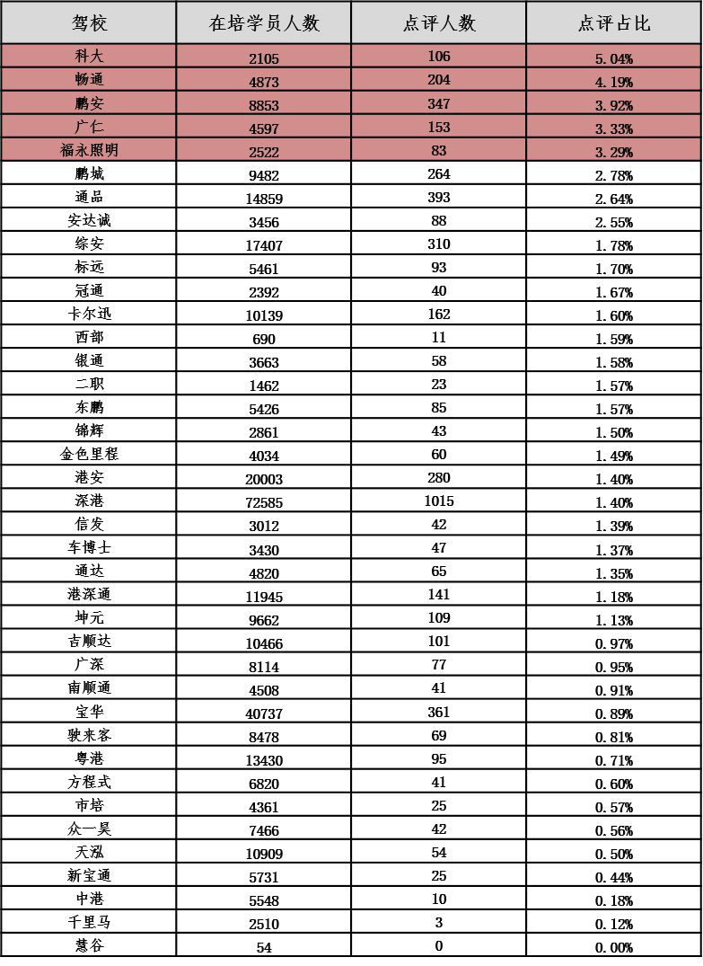 最新深圳駕校排行榜出爐!學員考試合格率最高的是……