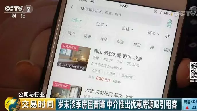 臨近春節(jié),深圳房屋租賃市場(chǎng)需求普遍冷淡,成交有明顯回落。崔明炫從事房屋租賃業(yè)務(wù)已經(jīng)有多年,他告訴央視財(cái)經(jīng)記者,從去年12月開(kāi)始退租的情況就不斷增多,很多租客搬離城市中心區(qū)到相對(duì)偏遠(yuǎn)的區(qū)域,或者有些直接就租不起退掉,等過(guò)完年再做打算。