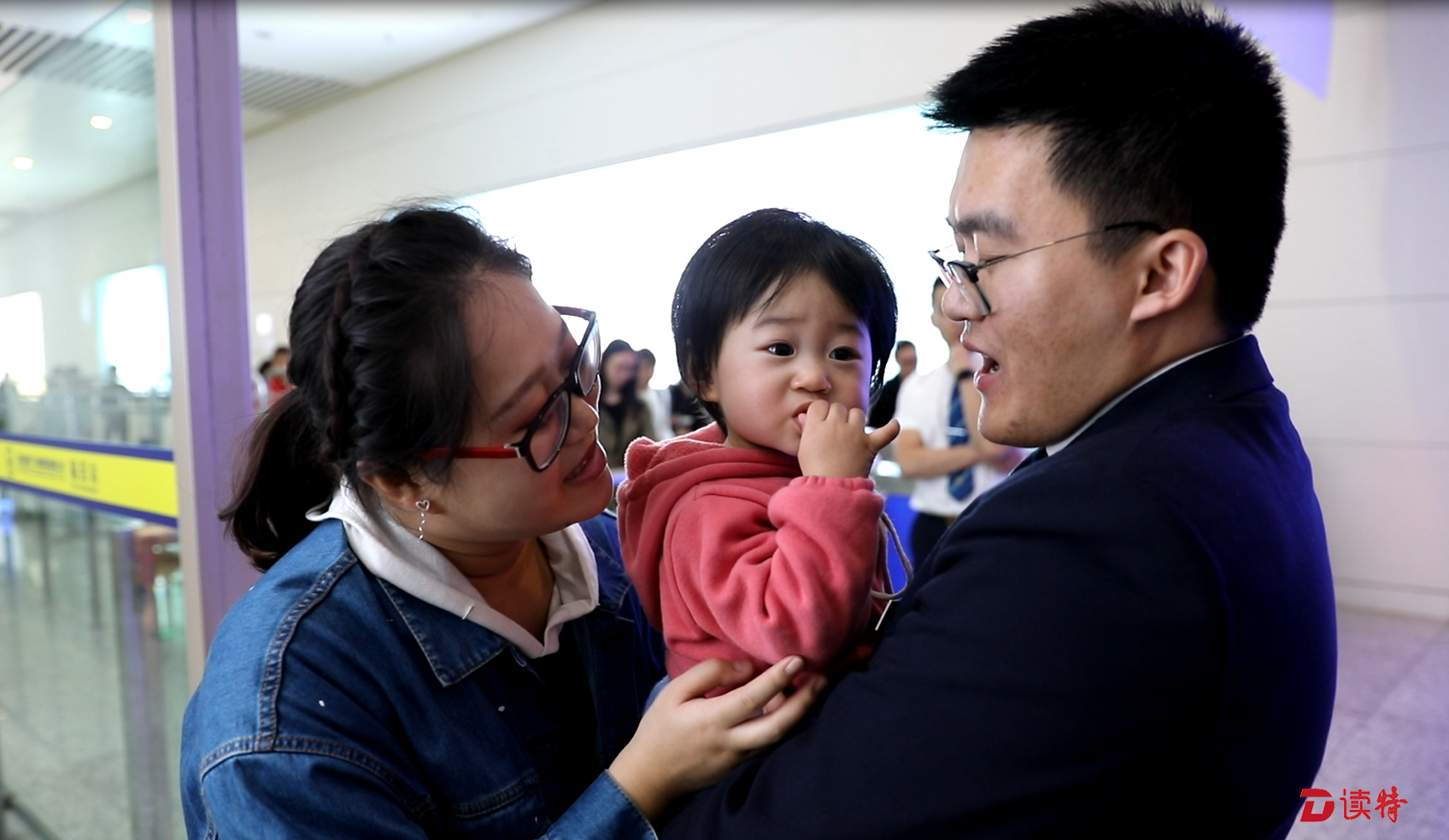 你下班時我接班!站臺上“交接”女兒的“春運夫妻”