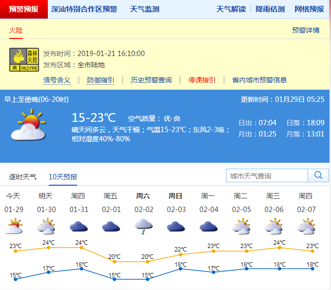 氣象局提醒市民,未來三天深圳晴朗干燥,是春節(jié)前大掃除和洗曬的好時(shí)機(jī);最近空氣持續(xù)干燥,森林火險(xiǎn)黃色預(yù)警生效中,市民需注意用火安全,外出游玩不帶火種上山;寒冷天氣需嚴(yán)防一氧化碳中毒,浴室應(yīng)注意通風(fēng)良好,注意燃?xì)鉄崴魇褂冒踩?,?yán)禁使用直排式和煙道式熱水器。