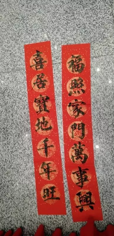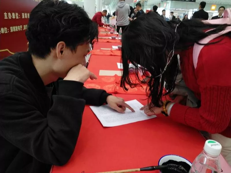現(xiàn)場寫春聯(lián)的活動(dòng)時(shí)很心動(dòng),