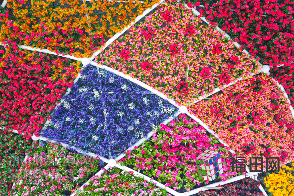 據(jù)工作人員介紹,整個(gè)花市門樓一共由129800株花卉打造而成,外形以三朵盛開的大花為主造型,花柱為上大下小的喇叭狀,頂部相連,底部成品字狀分布,花柱以交錯(cuò)的鋼結(jié)構(gòu)形成菱形的塊狀花紋,而每一塊菱形圖案中又嵌以五彩斑斕的花朵為裝飾物,整個(gè)門樓的色彩以紅色為主色調(diào),混合以粉色,紫色,白色,黃色等多個(gè)顏色的混合及點(diǎn)綴,形成豐富多彩的視覺感官,紅色的主色調(diào)運(yùn)用,亦很好的呼應(yīng)了春節(jié)喜慶祥和的節(jié)日氛圍。