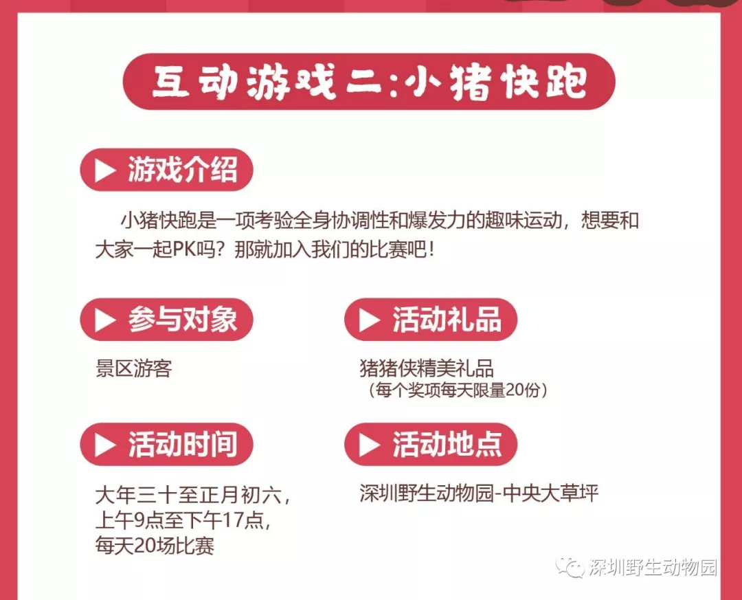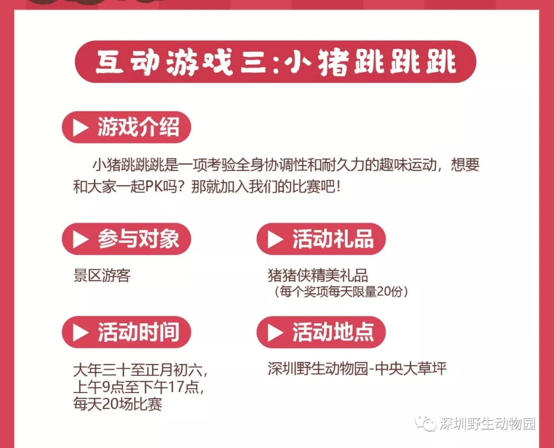 豬年新春新亮點(diǎn):豬年新生命,新伙伴隆重加入動物王國,點(diǎn)綴出新春最閃耀的色彩;別出心裁豬年豬科普展,帶你挖掘豬豬的“前世今生”;美不勝收深圳本土生物多樣性科普攝影展,換個角度了解我們身邊的動物朋友。